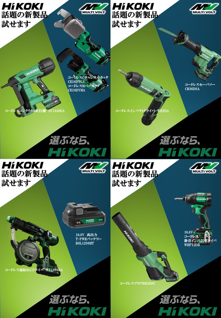 4月の【茨木店】さんの【HiKOKI】夕展は、27日(月)です!。新製品が連発し続けております!。まずは、10.8Vタブレス(Tバッテリー、高出力!、高容量!です( ̄y▽, ̄)╭ )。10.8V静\音インパクトな・の・で・すが、なんと、18V同等の締め付けスピードを実現 ( ̄┰ ̄*)。そして、これもタブレスBを掲載した10.8V、5.0A!!全ねじカッター!【実演致します!φ(* ̄0 ̄)φ(* ̄0 ̄) 】。3.6VタブレスBに続いて、10.8Vもタブレス仕様が続きます!。来ます、10.8V高出力の時代が・・・。そ・し・て・おかげ様で好評を頂いております、コードレスコンクリートピン打ち!o( ̄▽ ̄)d。こちらもデモします。「3.6Vタブレス、10.8Vタブレス、36Vタブレス・・・Σ(・□・;)。止まりません。忘れてました・・・、園芸のコードレスブロワ、セーバソーも出ました。是非一度見に来てください。当日は皆さまのご来店をお待ちしております。