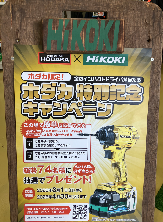 HiKOKI製品ご購入、ご検討のお客様へ金のインパクトドライバGETのチャンスです!